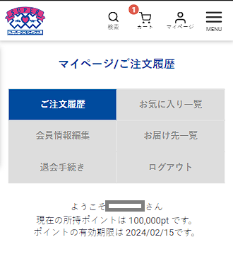 ポイントの有効期限は、”マイページ”上部に表示よりご確認いただけます。