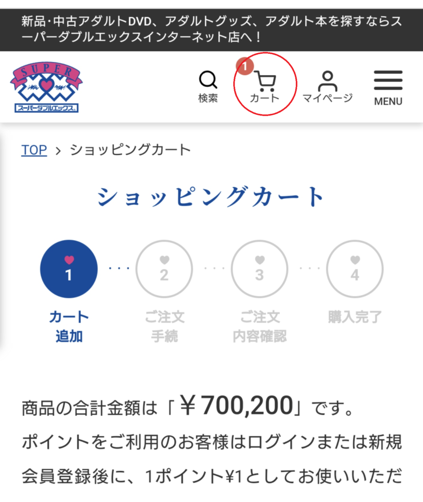 1 カートに入れた商品は、「ショッピングカート」の画面から削除することができます。「カート」をクリックして、「ショッピングカート」の画面を開いてください。