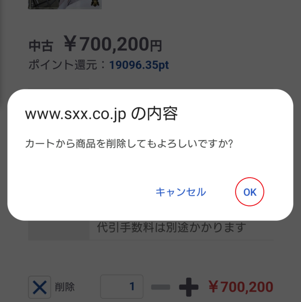 2 カートから削除したい商品を見つけ、「×削除」を選択します。